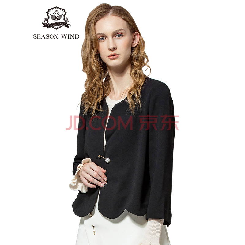 季候风2018春季新款女装时尚优雅一粒扣下摆花边小西装通勤上衣OL女6060XA511